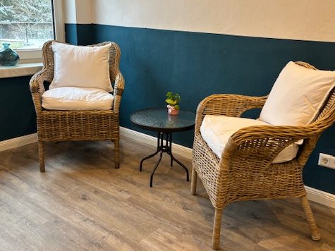 Die Praxis befindet sich in einem ehemaligen Bauernhaus, umgeben von einer wunderschönen ländlichen Umgebung, die bereits zur Erholung einlädt. Die Räumlichkeiten bieten Ihnen einen kleinen Wartebereich, ein modernes Klienten-WC und einen gemütlich eingerichteten Therapieraum mit Blick über die Felder, der eine entspannte Atmosphäre schafft.